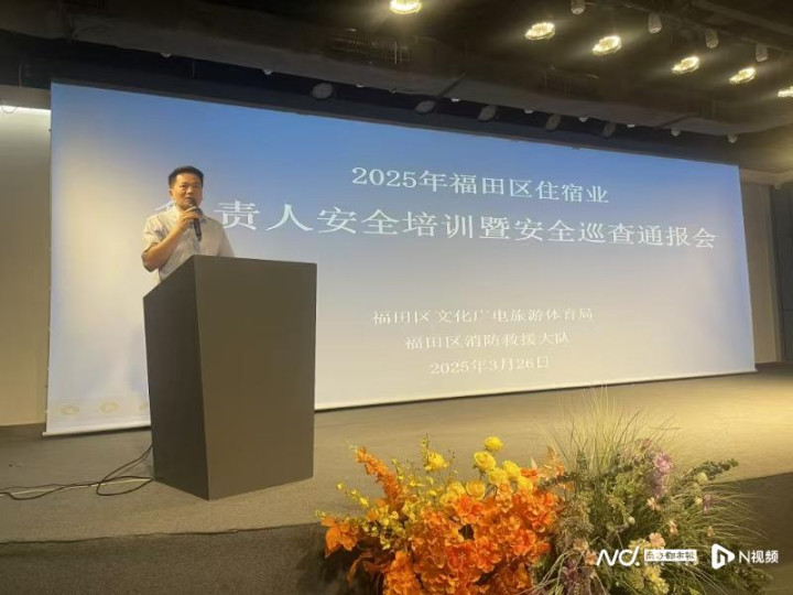 3月26日,2025年福田区住宿业负责人安全培训暨安全巡查通报会在福田区图书馆负一楼报告厅顺利举办,此次培训由福田区文化广电旅游体育局和区消防救援大队联合主办,全区200多家住宿企业负责人参与活动。